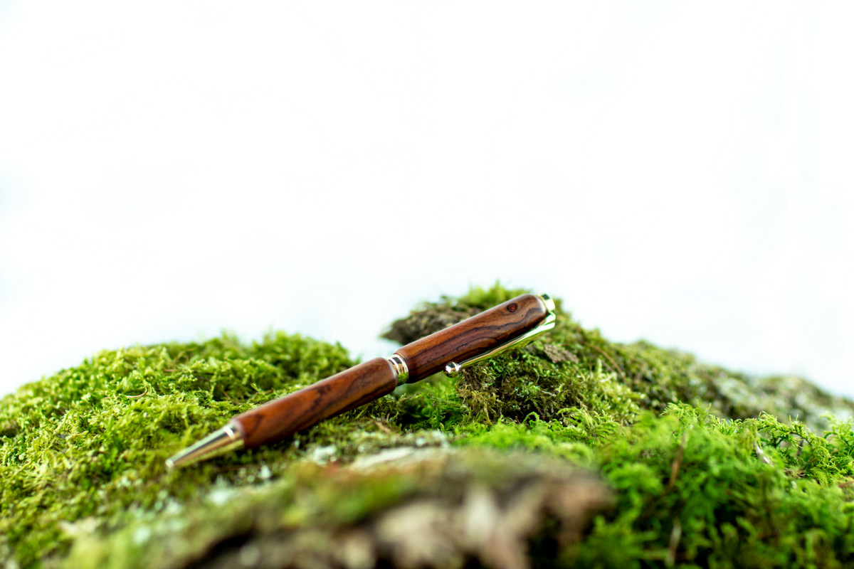 Drehkugelschreiber aus Cocobolo. Der Stift ist, wie alle meine Produkte von Hand gefertigt und mit Schellackwachs versiegelt. Die Minen können jederzeit ausgetauscht werden. Ersatzminen finden sie in jedem Schreibwarengeschäft.