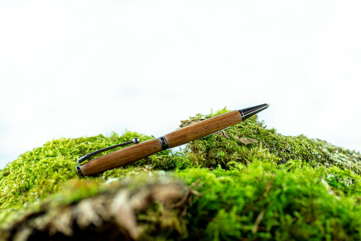 Drehkugelschreiber aus heimischer Robinie. Der Stift ist, wie alle meine Produkte von Hand gefertigt und mit Schellackwachs versiegelt. Die Minen können jederzeit ausgetauscht werden. Ersatzminen finden sie in jedem Schreibwarengeschäft.